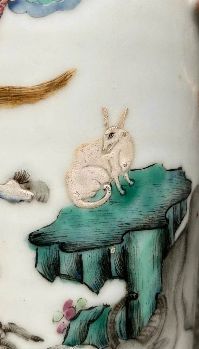 生肖瓷一直是收藏的熱門種類。我有一乾隆年間的小尊,上面繪制著十二生肖,其中夾雜的歷史小故事耐人尋味。此尊為官窯所出,畫師很有經(jīng)驗(yàn),不想給自己帶來麻煩,在繪畫時(shí)把兔子的尾巴加長(zhǎng)。因?yàn)榍偻,該避忌的,還是要避忌,畫短了就會(huì)陷入“兔子尾巴長(zhǎng)不了”之坑,惹上殺身之禍。