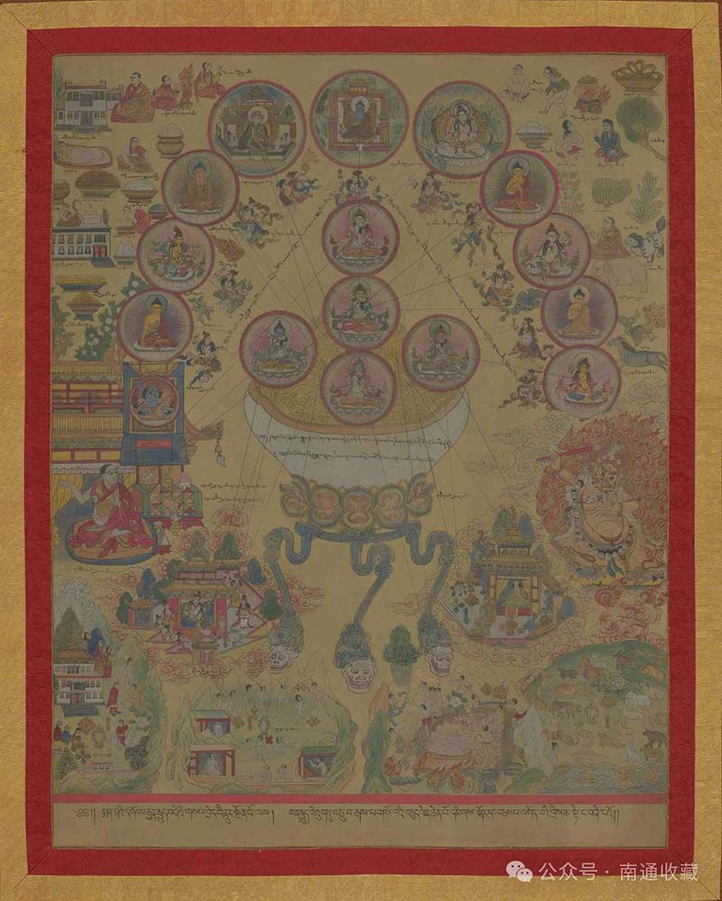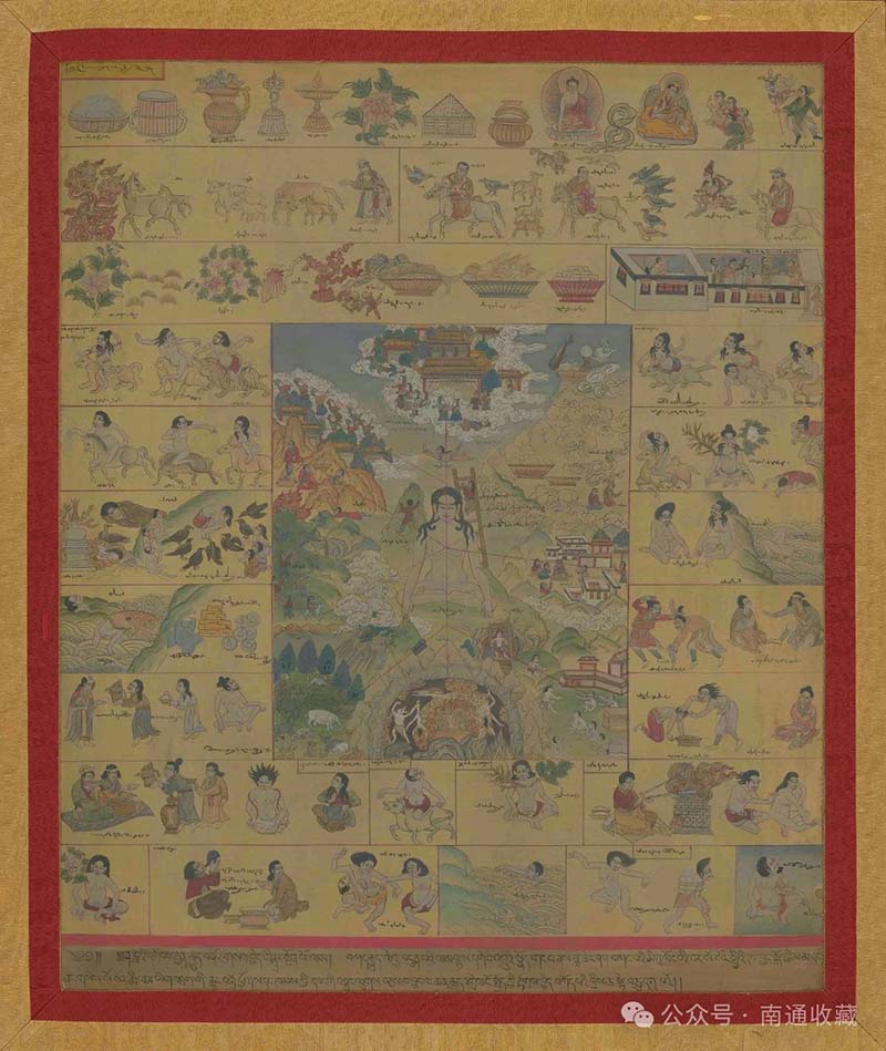 這組藏醫(yī)唐卡共有十幅,圖案精美,內(nèi)容豐富。既有藏醫(yī)基礎(chǔ)知識(shí),如人體解剖結(jié)構(gòu)、胚胎發(fā)育、治病問(wèn)診和養(yǎng)生預(yù)防等,還有各種臨床技術(shù),醫(yī)用工具的介紹。我十分喜歡,不時(shí)地在自己的中醫(yī)館中展示。在藏區(qū),許多藏醫(yī)院里均珍藏有這些醫(yī)學(xué)唐卡,即使在內(nèi)地的醫(yī)學(xué)院和藥廠也以珍藏此類藏醫(yī)唐卡為榮。