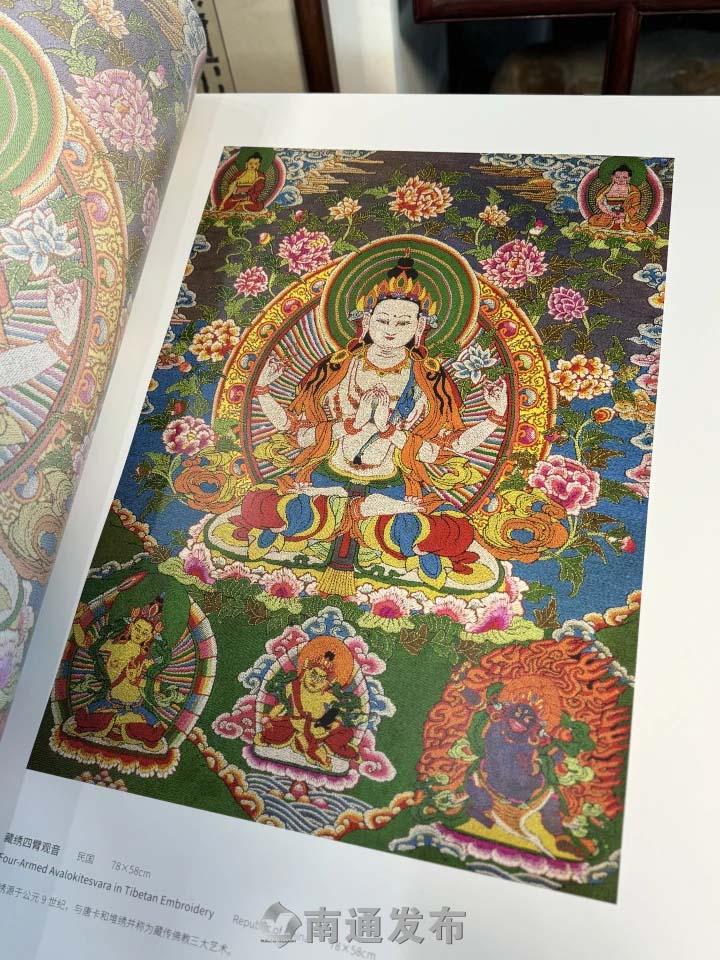 近20年來,崔世榮先后收藏了200多幅唐卡,涉及彩繪唐卡、刺繡唐卡、堆繡唐卡、緙絲唐卡、珍珠唐卡、瑪瑙唐卡、印刷唐卡、牛皮唐卡等多種不同制作工藝或材質。“像刺繡唐卡又分為蘇繡、藏繡、堆繡、盤金繡、發繡等不同刺繡工藝。其中,歷史上發繡的發源地就是我們里下河一帶,是以青絲代線入畫的一種非遺絕技。”他強調,一幅好的唐卡作品往往需要用到三五十種色彩,時間的流逝亦能給唐卡的畫面本身帶來了一種難以復刻的獨特韻味與歷史沉淀,進而帶給觀賞者一種莊重、肅穆、神秘之感。